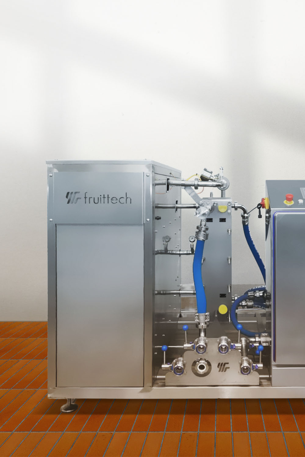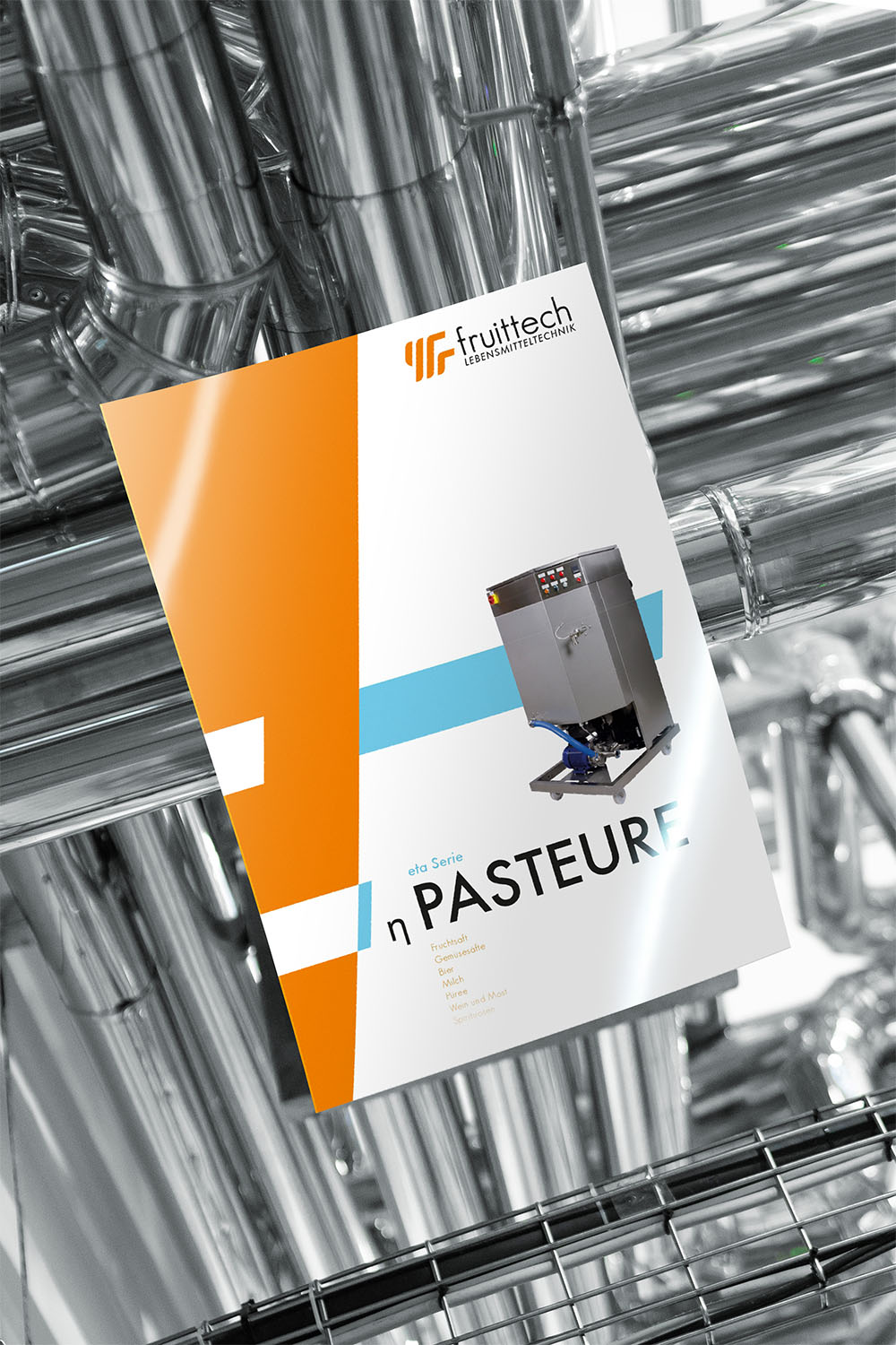 Mit Bezug auf das erste Produkt des Unternehmens Fruittech, einen innovativen Pasteur, der zu 100 % auf die Bedürfnisse mittelständischer Saftproduzenten optimiert ist, sollte das Logo den Wärmetauscher (das Herz eines Pasteurs) widerspiegeln.
